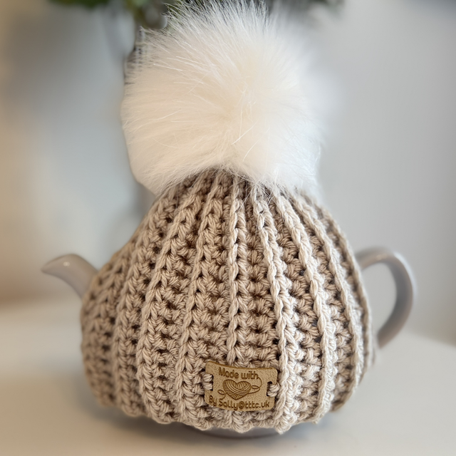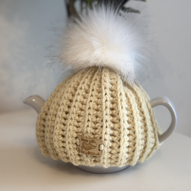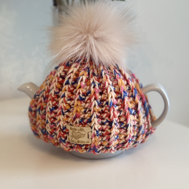 Our lovely tea cosy’s are handmade in 100% acrylic for durability and easy to wash. Each one has a pom pom which can be changed due to the little button sewn into the top of each cosy.